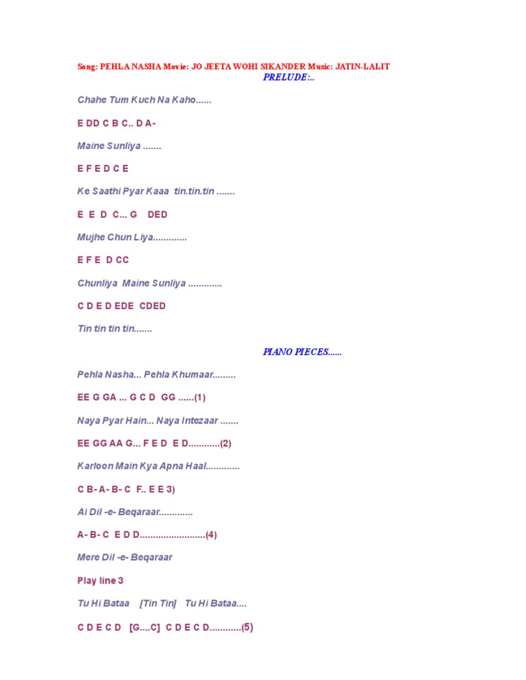 Pehla Nasha Piano Staff Notation / Pukarta chala hu main western piano staff notation sheet, pukarta chala hu main piano notes, pukarta chala hu browse piano staff notations from our vast library of hindi bollywood songs, marathi songs, south indian songs and english songs.